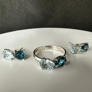 Conjunto Anillo y Pendientes Plata Aguamarina