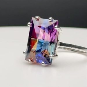Anillo Plata y Garra con Piedra Multicolor Cuadrada
