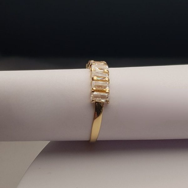 Descubre la elegancia atemporal con nuestro exquisito anillo de 18 quilates, adornado con siete deslumbrantes circonitas en corte baguette. Este anillo es la combinación perfecta de sofisticación y brillo, ideal para cualquier ocasión especial o para añadir un toque de glamour a tu día a día.