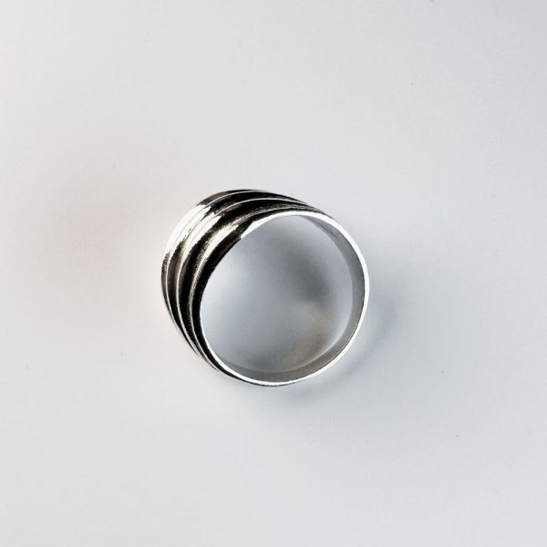 Esta pieza única destaca por su estilo contemporáneo, ideal para quienes buscan un accesorio sofisticado con un toque de originalidad. El diseño asimétrico resalta la belleza natural de la plata, creando un anillo que no pasa desapercibido. Las ondas Horizontales consiguen un efecto de plenitud y elegancia.