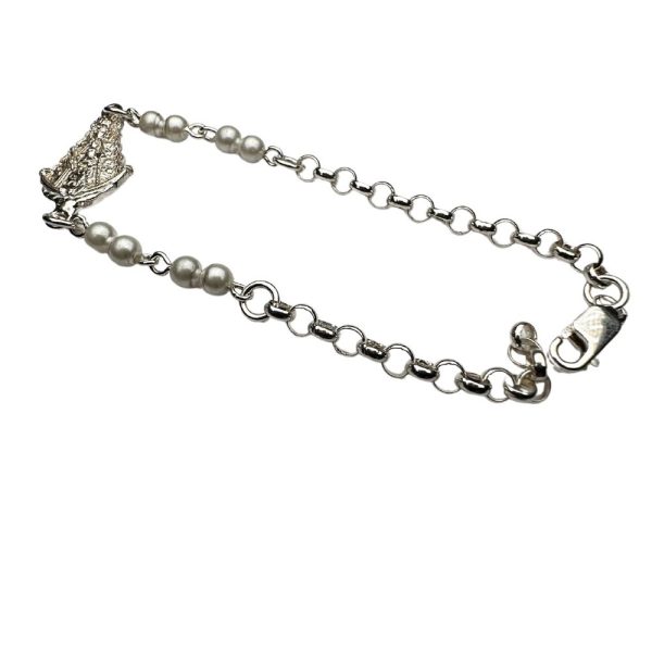 Pulsera de Plata de Primera Ley 925 con Virgen del Rocío y Perlas – Elegancia y Devoción en Cada Detalle